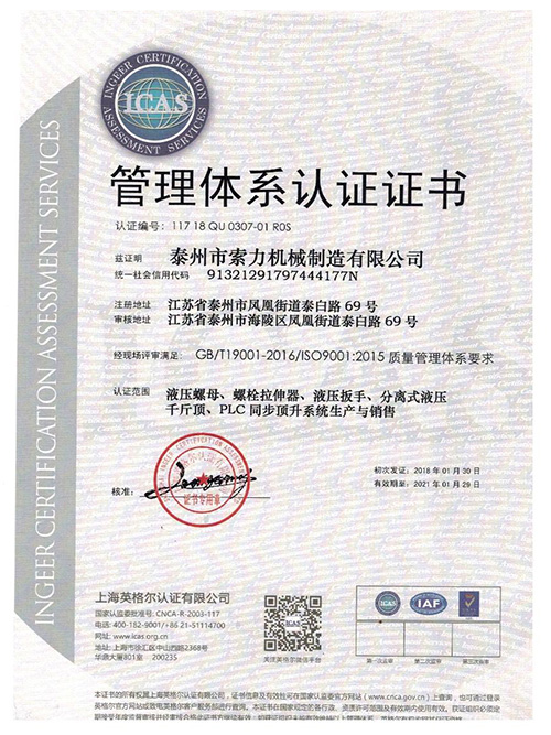 管理體系認(rèn)證證書中文版 |
