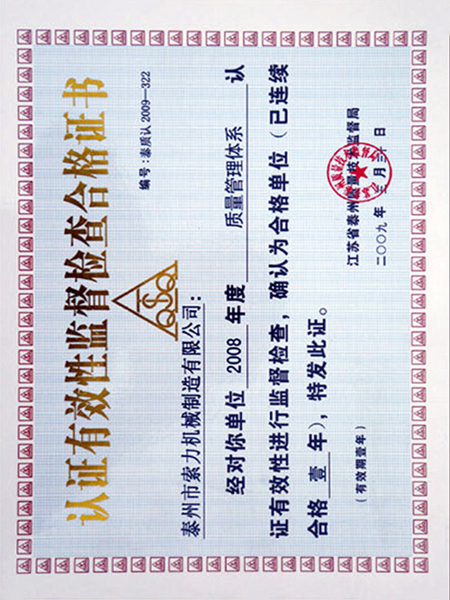 有效性監(jiān)督檢查合格證書 |